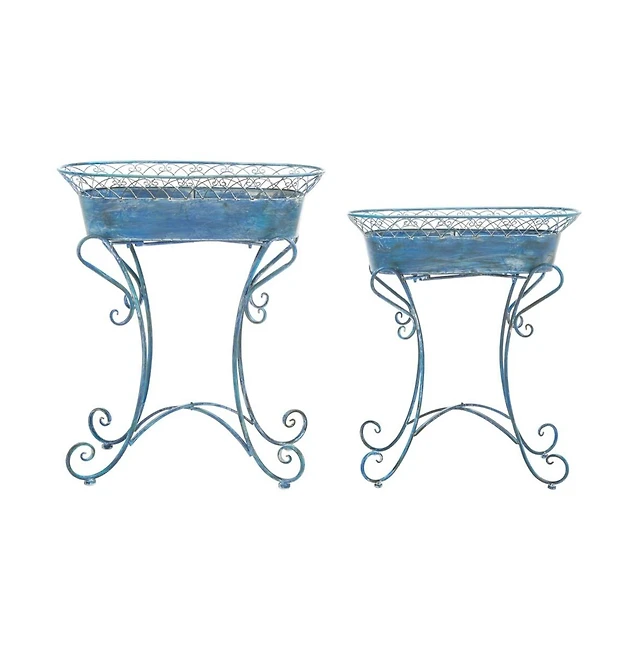 Set of 2 Double-Tier Acacia Wood Patio Side Table with Slatted Tabletop and Shelf