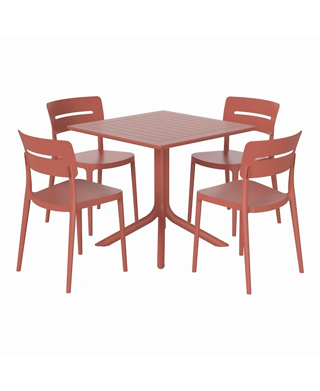 5-Piece Modern Patio Round Dining Table Set with Stackable Chairs