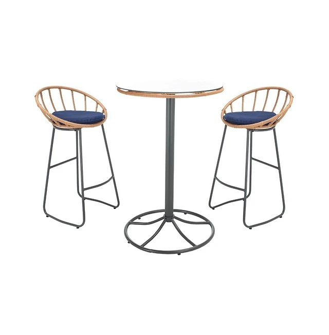 3PCS Patio Rattan Wicker Bar Table Stools Dining Set Cushioned
