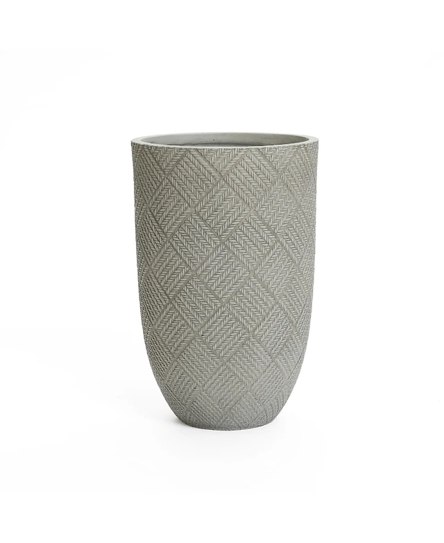 LuxenHome Gray Glen Pattern 16.7-Inch Tall MgO Urn Planter, Indoor and Outdoor