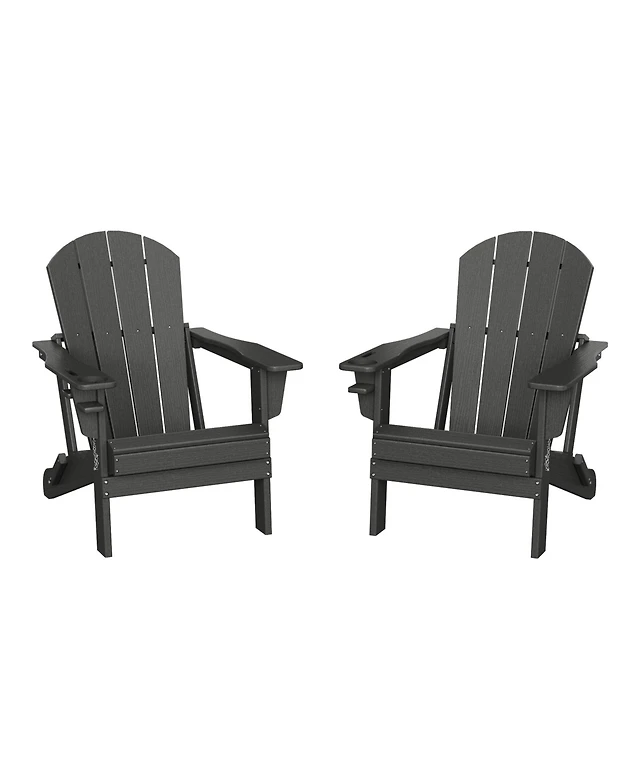 Gymax 2 Pcs Eucalyptus Adirondack Chair Foldable Outdoor Wood Lounger Chair