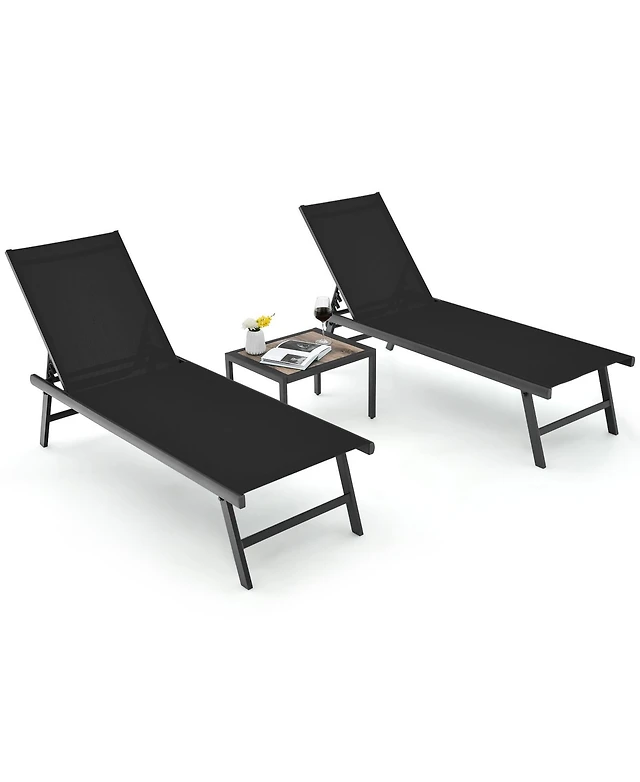 Gymax 3pcs Patio Chaise Lounge Set Aluminum Recliner Chair Table Outdoor