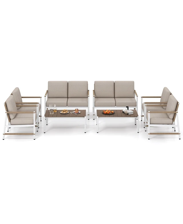 Gymax Hdpe Outdoor Dining Table for 6 Person 67'' Patio w/ Wood-Like Tabletop