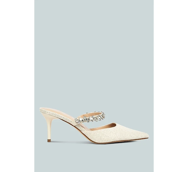 Greta Diamante Embellished Kitten Heel Mules