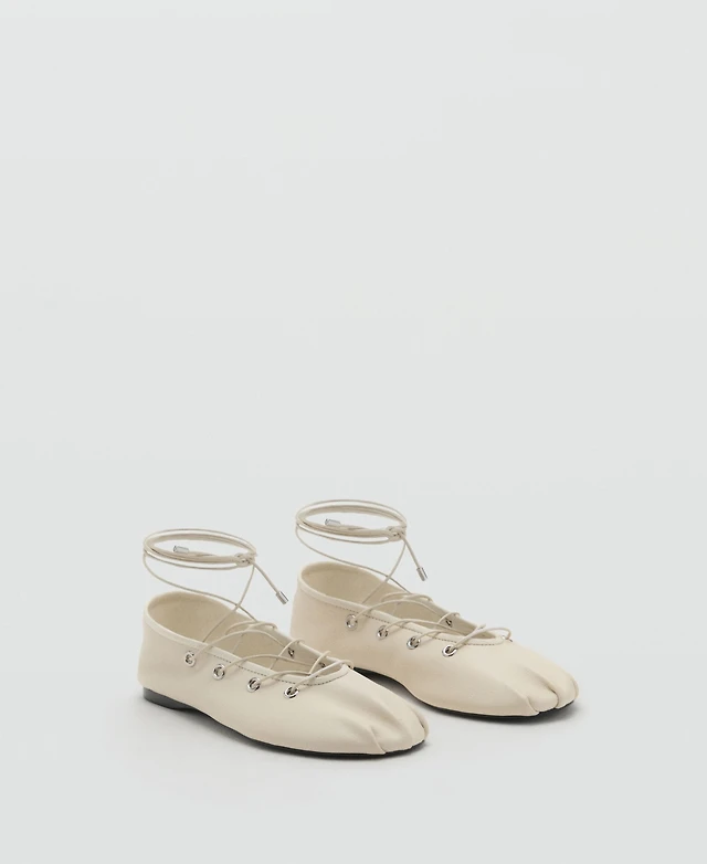 Mango Women's Crossed Straps Leather Ballet Flats