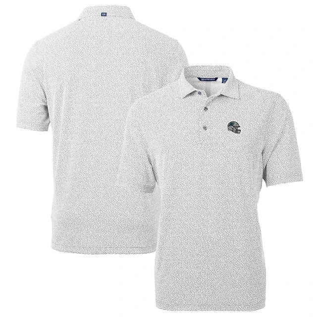 Men's Cutter & Buck Silver Carolina Panthers Helmet Virtue Eco Pique Botanical Print Recycled Polo