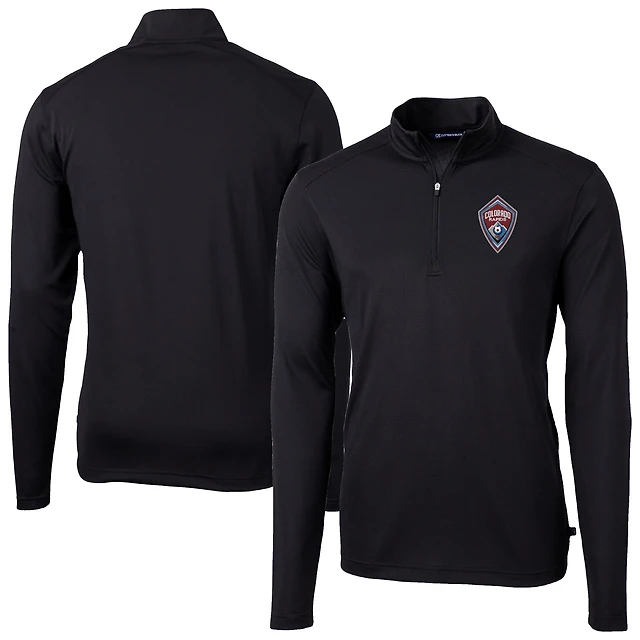 Men's Cutter & Buck Black Colorado Rapids Virtue Eco Pique Recycled Quarter-Zip Pullover Top