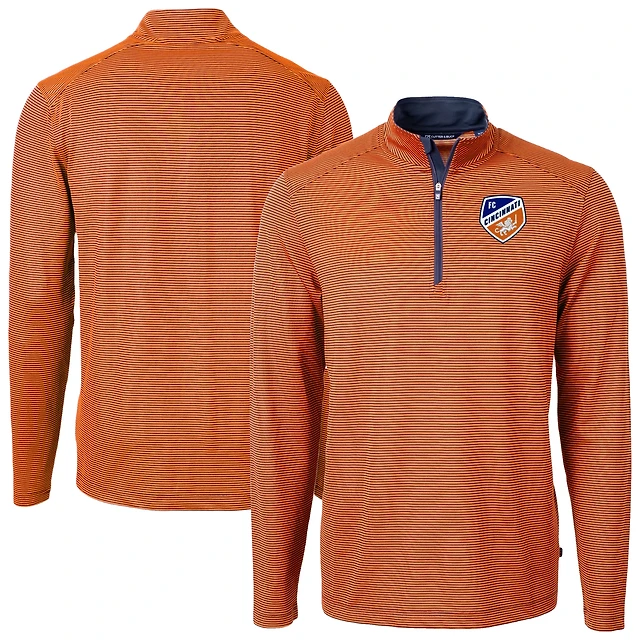 Men's Cutter & Buck Orange FC Cincinnati Virtue Eco Pique Micro Stripe Recycled Quarter-Zip Pullover Top