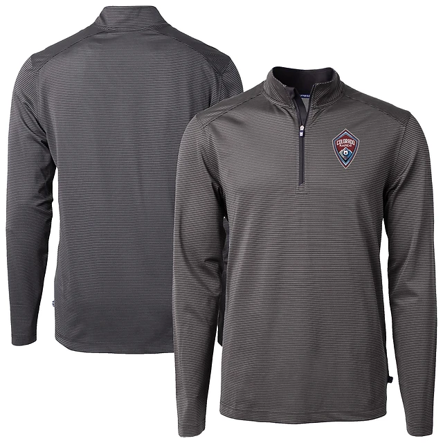 Men's Cutter & Buck Black Colorado Rapids Virtue Eco Pique Micro Stripe Recycled Quarter-Zip Pullover Top