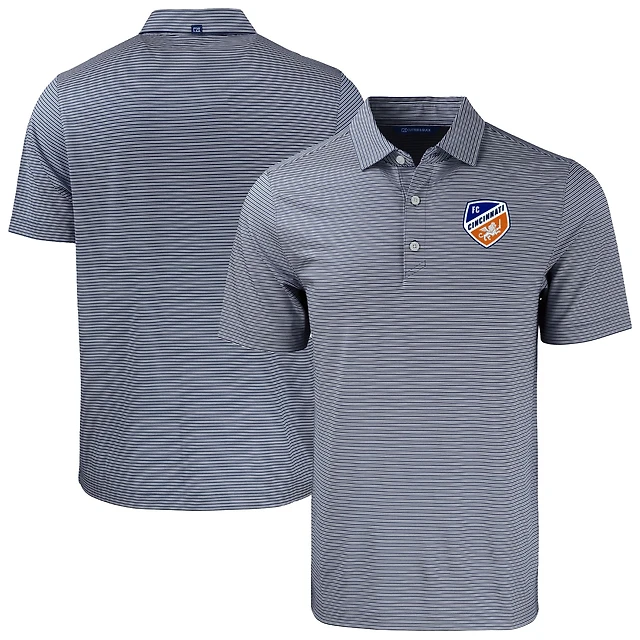 Men's Cutter & Buck Navy/White FC Cincinnati Forge Eco Fine Line Stripe Stretch Recycled Polo