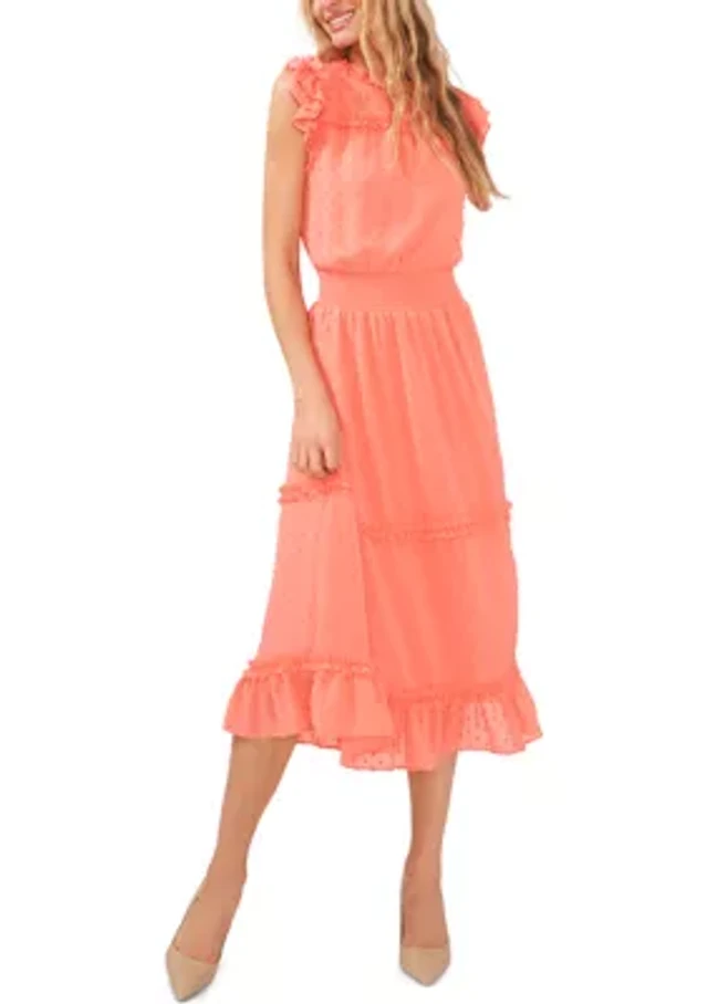 Petite Short Flutter Sleeve Slip Dot Midi Dress