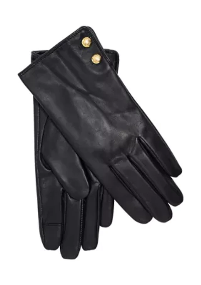Lauren Ralph Lauren Leather Two-Button Touch Gloves