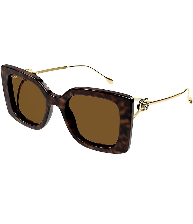 Gucci Flat & Bend 54mm Square Tortoise Statement Sunglasses