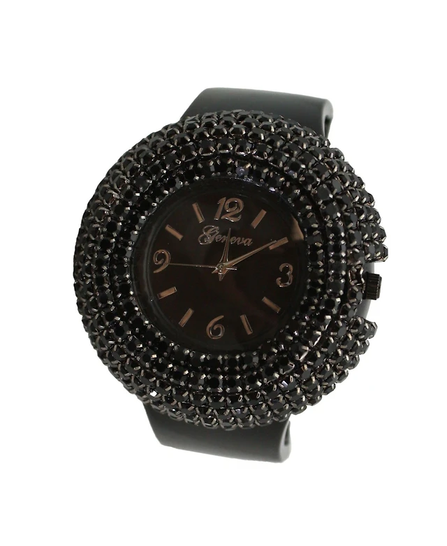 Black Sparkle Rhinestones Chunky Bangle Women Watch