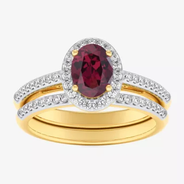Modern Bride Gemstone Womens 1/8 CT. T.W. Lead Glass-Filled Red Ruby 10K Gold Oval Side Stone Bridal Set