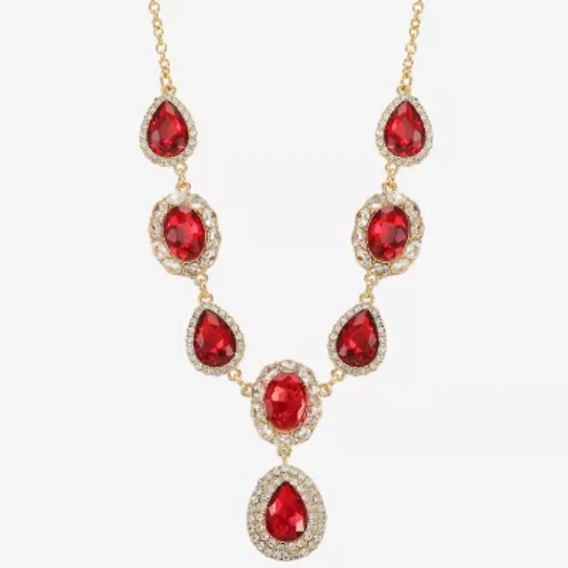 Monet Jewelry Gold Tone Halo Frontal Womens Glass 18 Inch Y Necklace