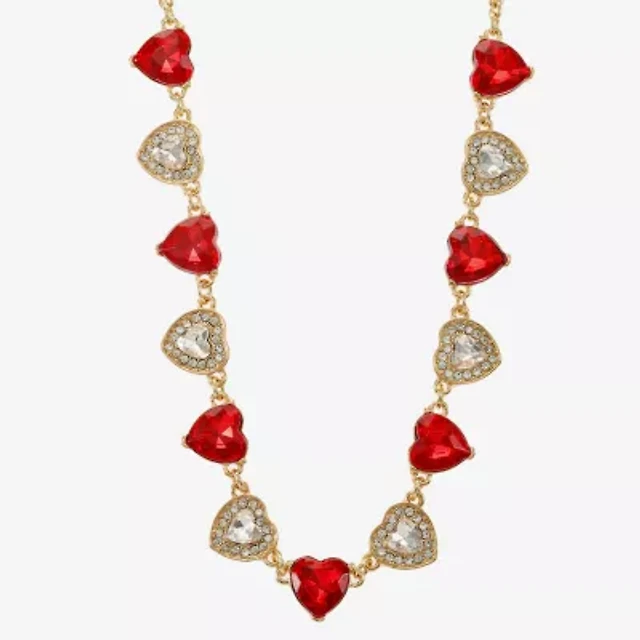 Monet Jewelry Gold Tone Womens Red Glass Heart 17 Inch Pendant Necklace