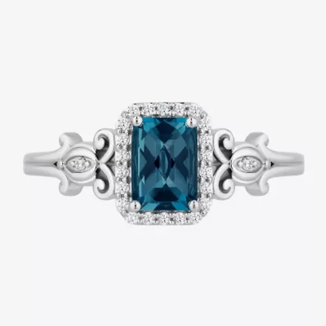 Enchanted Disney Fine Jewelry Cinderella (I, I2) Womens 1/8 CT. T.W. Genuine Blue Topaz Sterling Silver Cocktail Ring