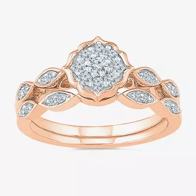 DiamonArt® Womens 4 CT. T.W. White Cubic Zirconia 14K Rose Gold Over Silver Round Bridal Set