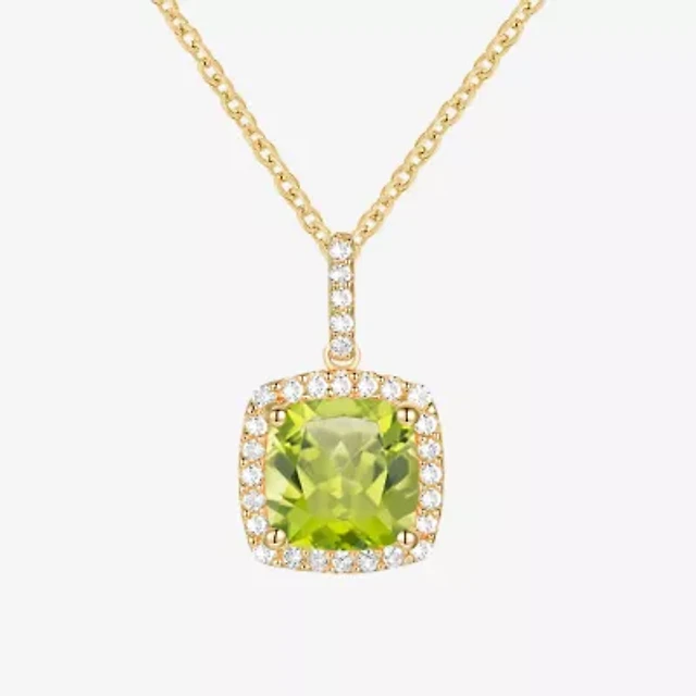 Womens Genuine Green Peridot 18K Gold Over Silver Round 18 Inch Pendant Necklace