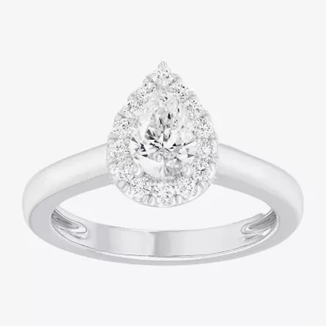 Womens Diamond Accent Genuine Green Emerald Platinum Over Silver Marquise Halo Cocktail Ring