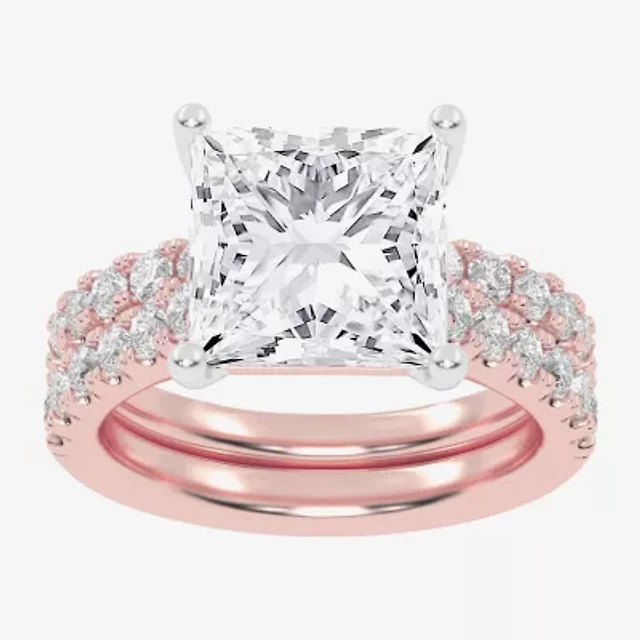 (G / I1) Womens 2 CT. T.W. Lab Grown White Diamond 10K Gold Side Stone Halo Engagement Ring