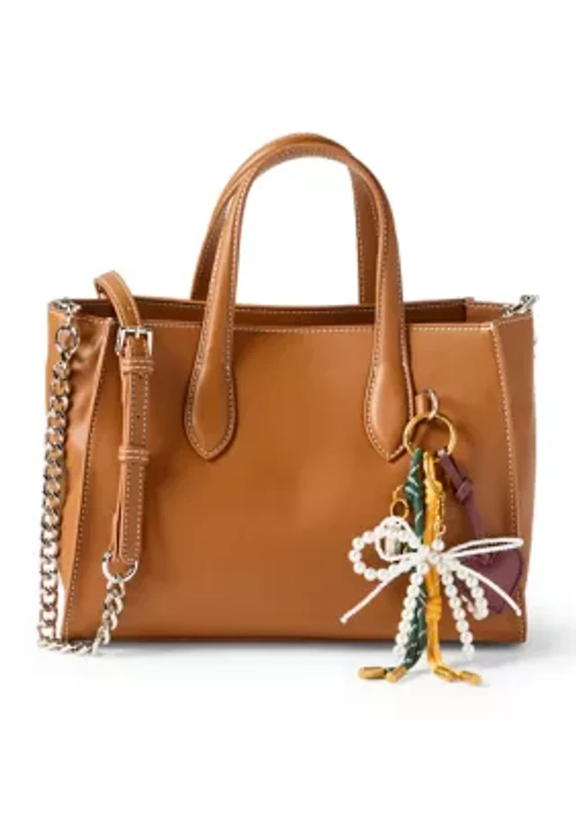 Steve Madden Elloise Crocodile Embossed Belted Charm Satchel Bag