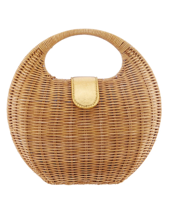 Rattan & Leather Small Farrah Satchel