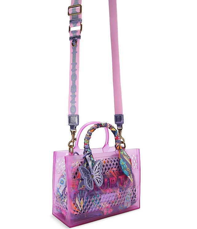 Betsey Johnson Meshin Around Lemon Striped Mesh Scalloped Tote Bag