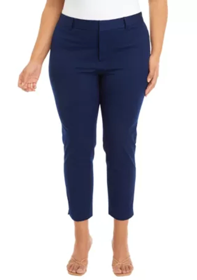 Women's Fly Front Belted Paperbag Waist Straight Leg Pants