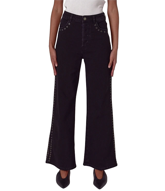 Karen Kane Rhinestone Embellished High Rise Wide Leg Trouser Pants