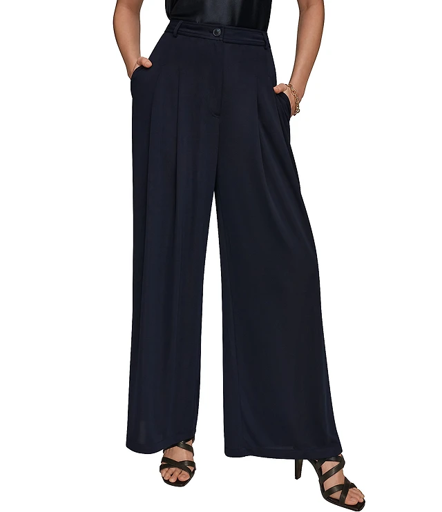 Donna Karan Knit Jersey Pleated Wide Leg Pants