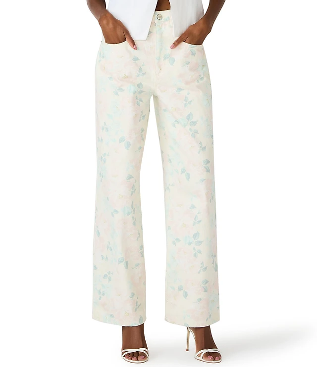 Sanctuary Marine Floral Embroidered Wide-Leg Cropped Denim Jeans