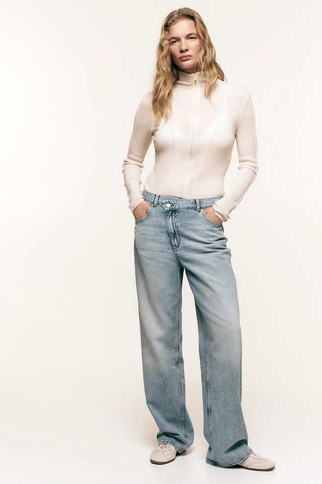 Low-Rise Light Wash Comfort Waistband Baggy Jeans