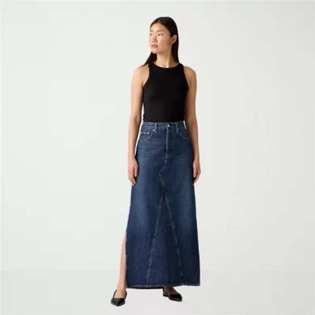 a.n.a Womens Plus High Rise Long Denim Skirt