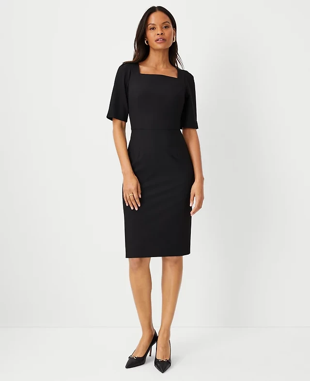 Ann Taylor The Petite Elbow Sleeve Square Neck Dress Seasonless Stretch - Curvy Fit Women's