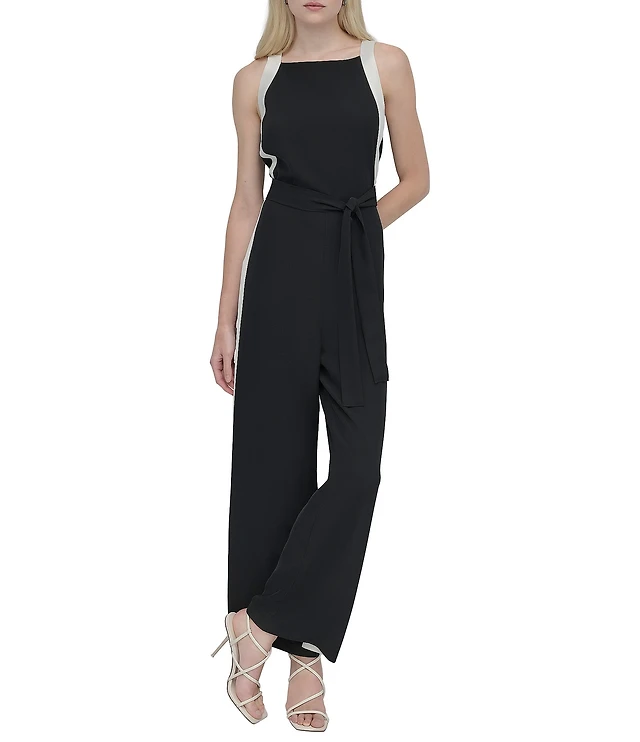 7 For All Mankind Weightless Point Collar Sleeveless Denim Pleated Wide Leg Jumpsuit