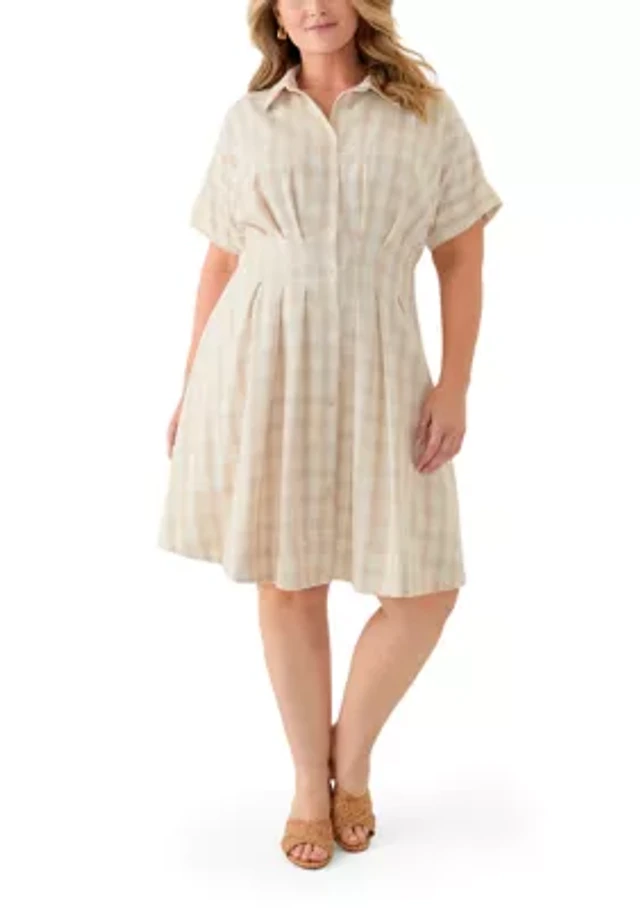 Plus Short Sleeve Collar Dot Print A-Line Dress
