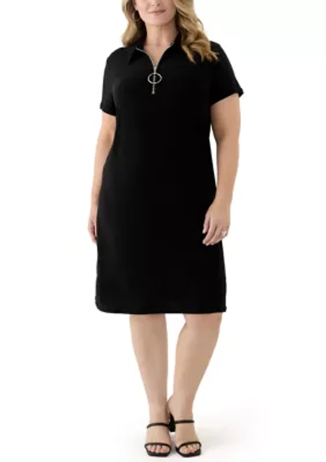 Plus Short Sleeve Zip Collar Floral Print Fit and Flare Dress