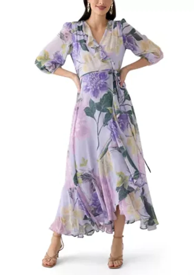 Plus Floral Print Chiffon Maxi Dress