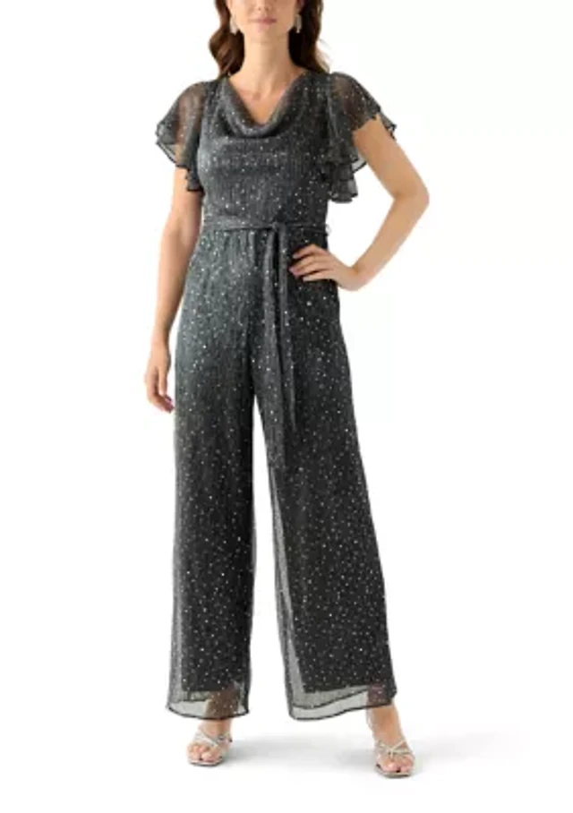 Women's Chiffon Cold Shoulder Glitter Jumpsuit