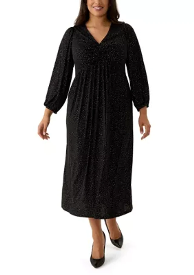 Plus Long Sleeve Collared Midi Dress