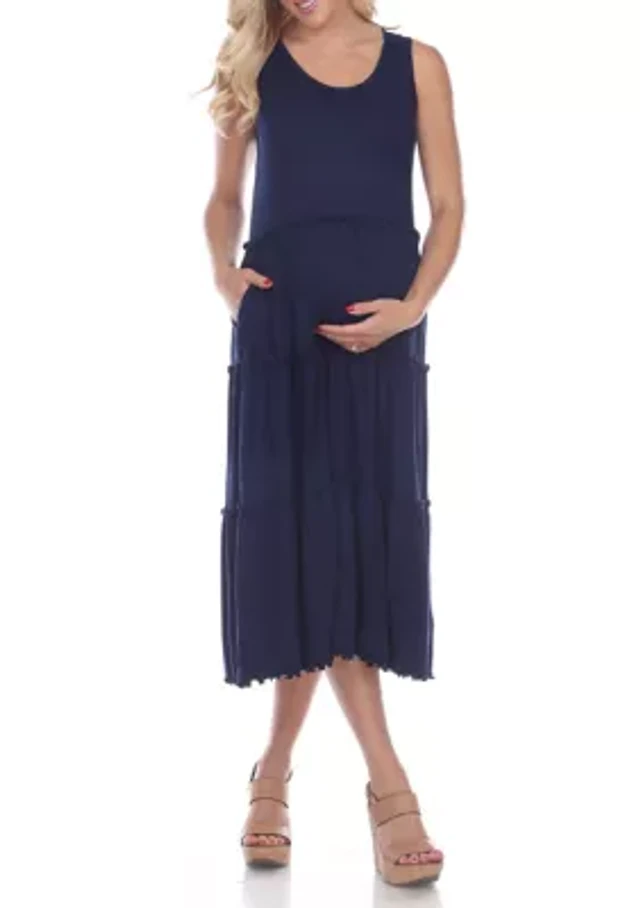 Fit and Flare Sleeveless Maternity Midi Dress with Pockets