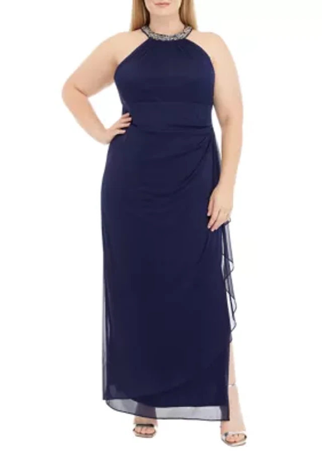 Women's Sleeveless V-Neck Mesh Tier Gown