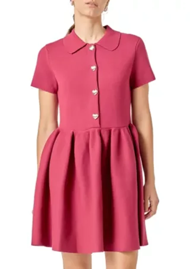 PEPLUM MINI KNIT DRESS WITH BIG BUTTON DETAILS