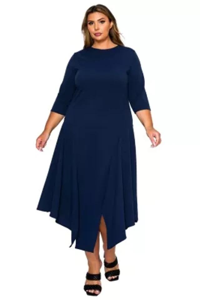 Karen Kane Scoop Neck 3/4 Sleeve Fit and Flare Knit Dress