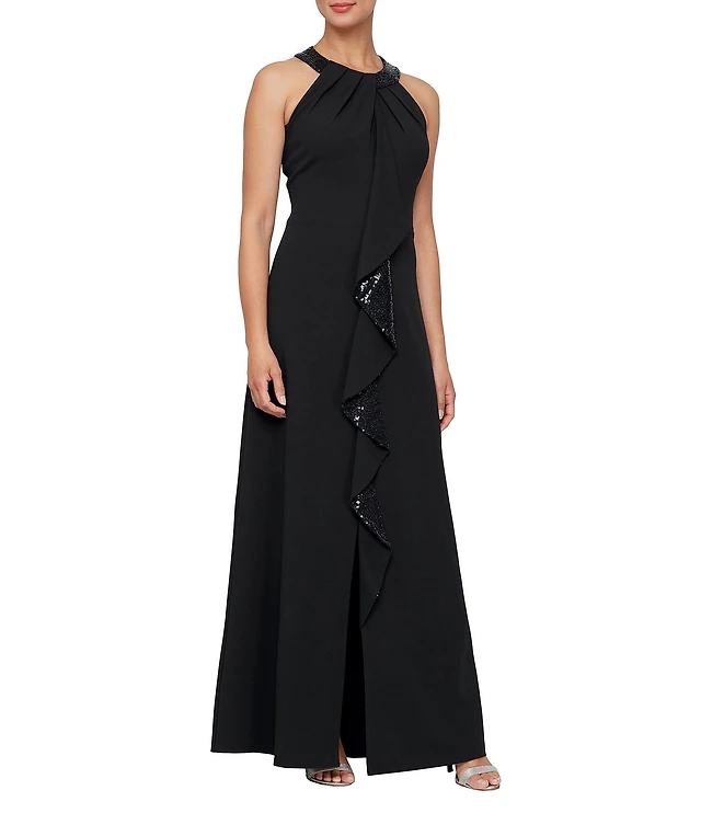 Mac Duggal High Halter Bow Turtleneck Sleeveless A-Line Gown