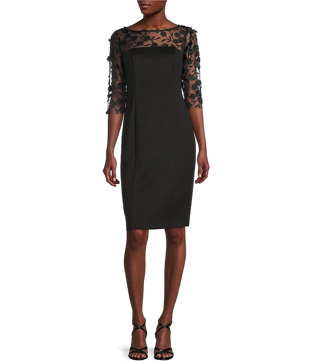Adrianna Papell Stretch Crepe 3/4 Bell Sleeve Boat Neck Sheath Dress