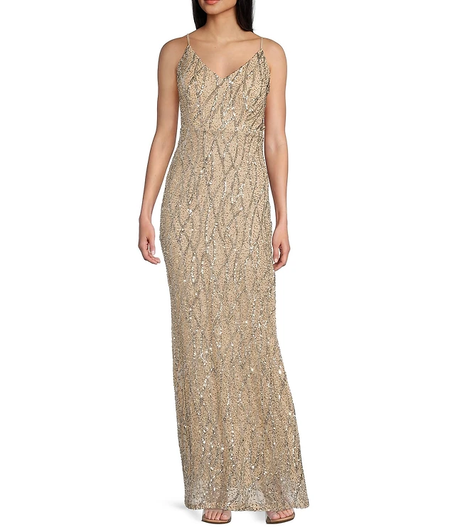 Jump Illusion Beaded Detail V-Neck Spaghetti Strap Side Slit Gown