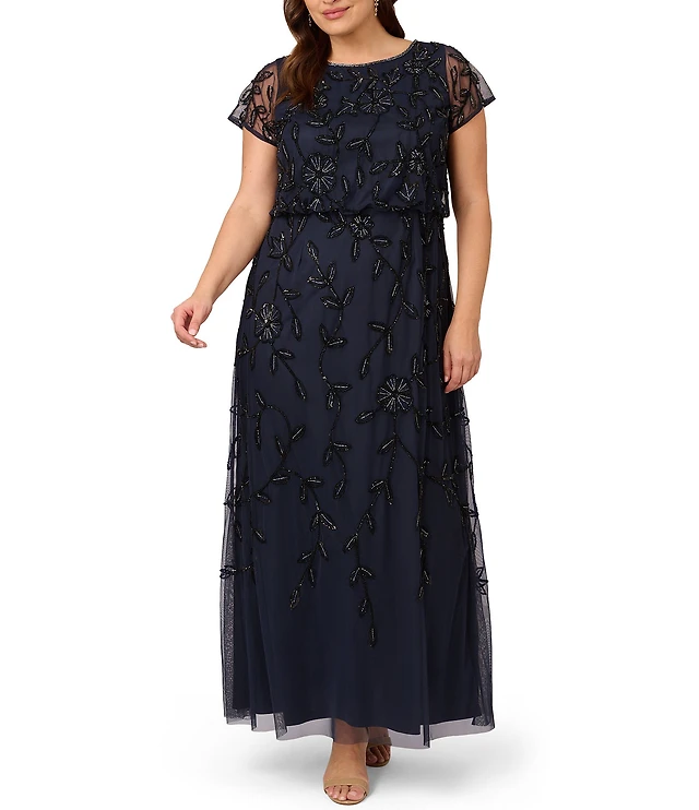 Ignite Evenings Plus Size Short Sleeve Embellished Crew Neck 2-Piece Jacket Dress